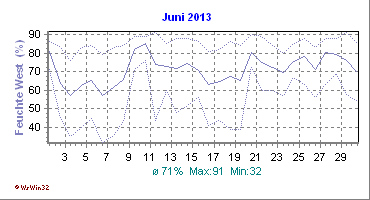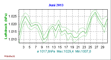 Monatsdiagramm Juni 2013 Die Kurven zeigen den Durchschnittswert des jeweiligen Tages an |