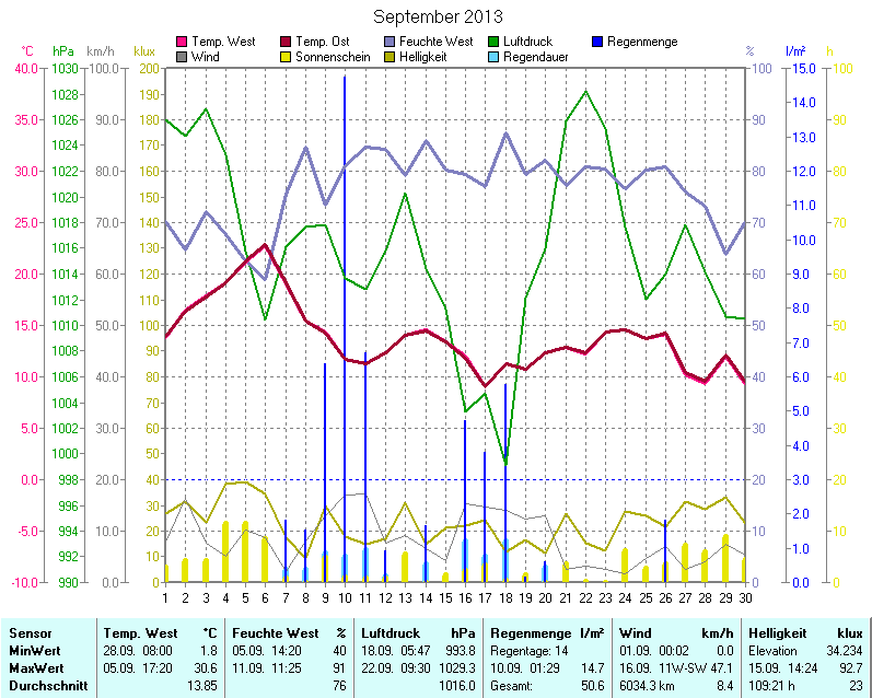 Wetter-Monatsübersicht September 2013 | ||||||||||||||||||||||||||||