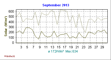 Monatsdiagramm September 2013 Die Kurven zeigen den Durchschnittswert des jeweiligen Tages an |