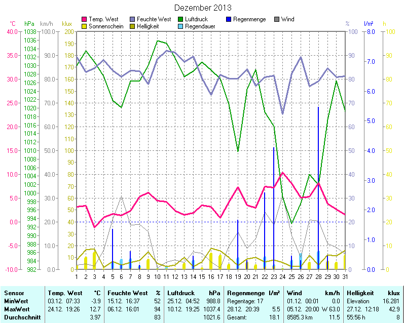 Wetter-Monatsübersicht Dezember 2013 | ||||||||||||||||||||||||||||