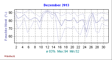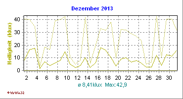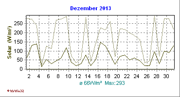 Monatsdiagramm Dezember 2013 Die Kurven zeigen den Durchschnittswert des jeweiligen Tages an |