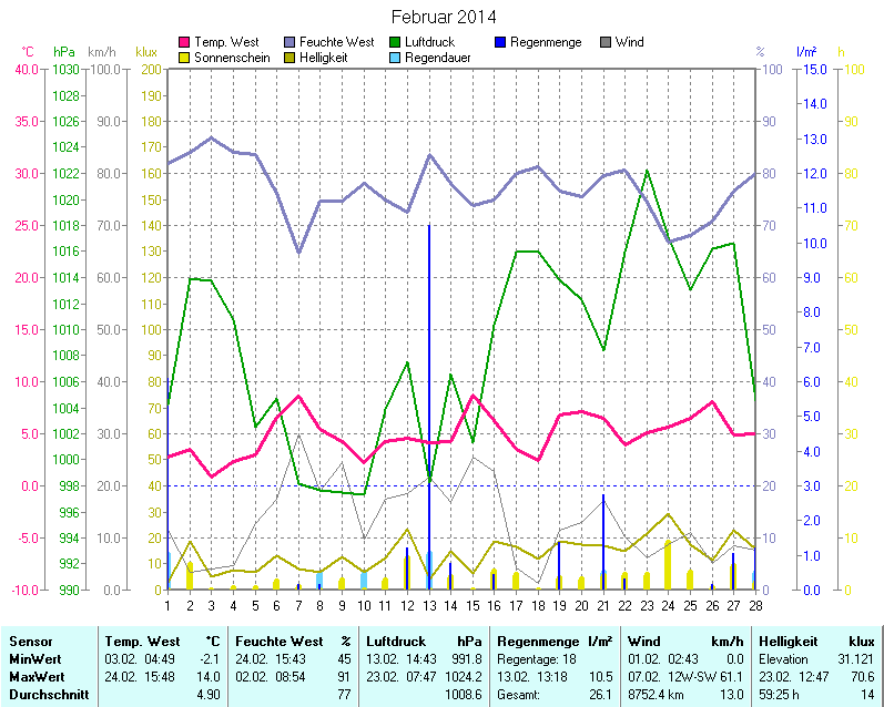 Wetter-Monatsübersicht Februar 2014 | ||||||||||||||||||||||||||||