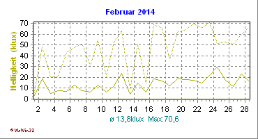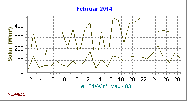 Monatsdiagramm Februar 2014 Die Kurven zeigen den Durchschnittswert des jeweiligen Tages an |