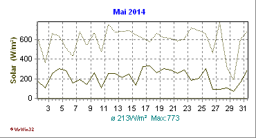 Monatsdiagramm Mai 2014 Die Kurven zeigen den Durchschnittswert des jeweiligen Tages an |