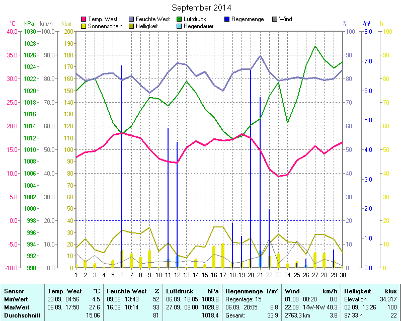 Wetter-Monatsübersicht September 2014 | ||||||||||||||||||||||||||||