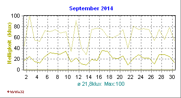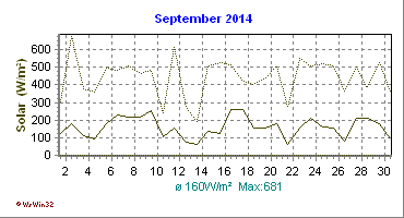 Monatsdiagramm September 2014 Die Kurven zeigen den Durchschnittswert des jeweiligen Tages an |