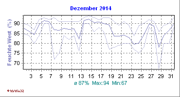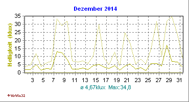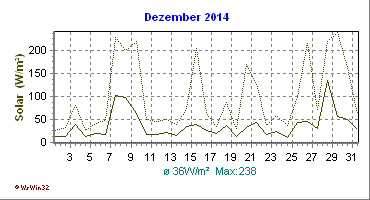 Monatsdiagramm Dezember 2014 Die Kurven zeigen den Durchschnittswert des jeweiligen Tages an |