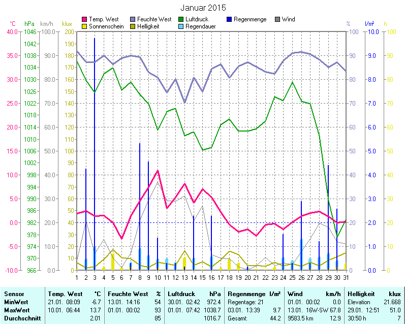 Wetter-Monatsübersicht Januar 2015 | ||||||||||||||||||||||||||||