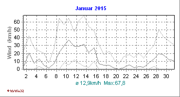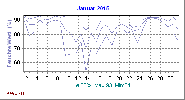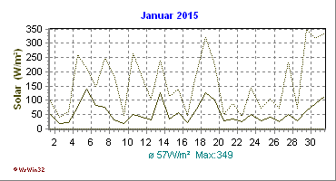 Monatsdiagramm Januar 2015 Die Kurven zeigen den Durchschnittswert des jeweiligen Tages an |