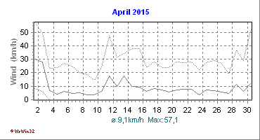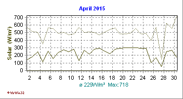 Monatsdiagramm April 2015 Die Kurven zeigen den Durchschnittswert des jeweiligen Tages an |