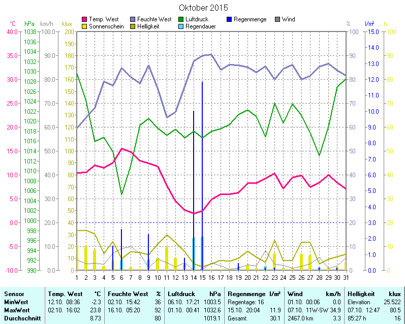 Wetter-Monatsübersicht Oktober 2015 | ||||||||||||||||||||||||||||
