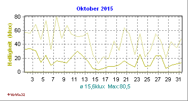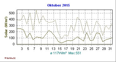 Monatsdiagramm Oktober 2015 Die Kurven zeigen den Durchschnittswert des jeweiligen Tages an |