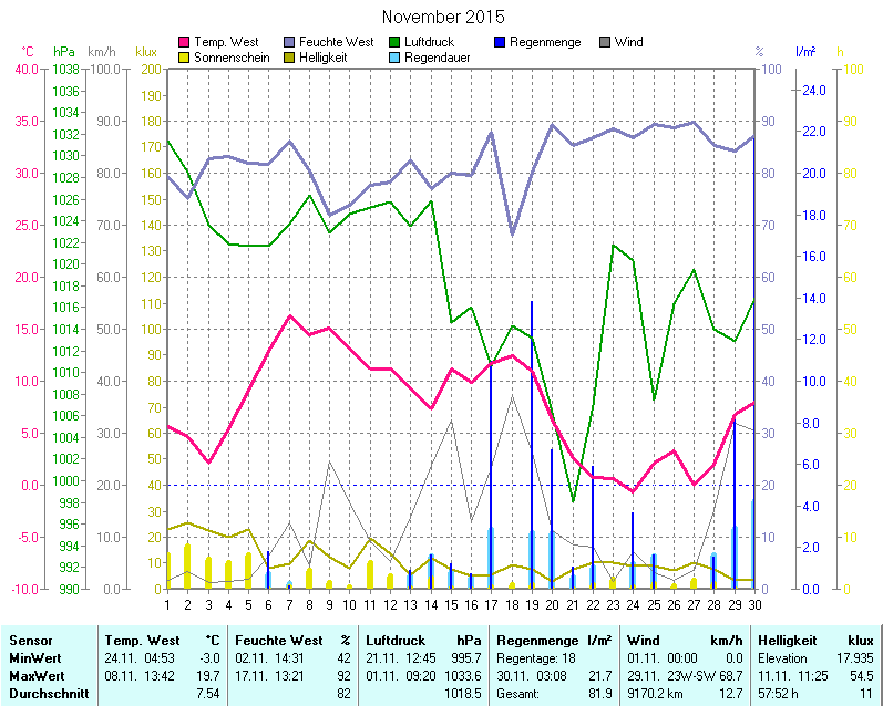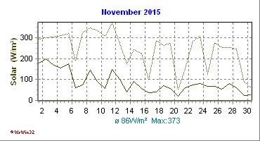 Monatsdiagramm November 2015 Die Kurven zeigen den Durchschnittswert des jeweiligen Tages an |