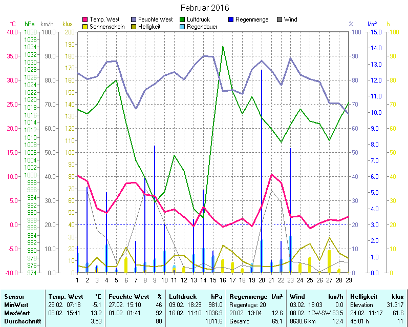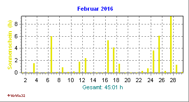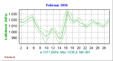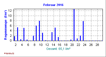 Wetter-Monatsübersicht Februar 2016 | ||||||||||||||||||||||||||||