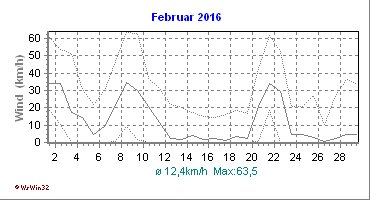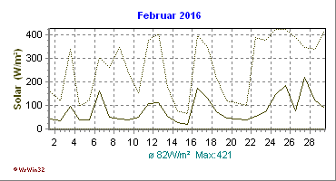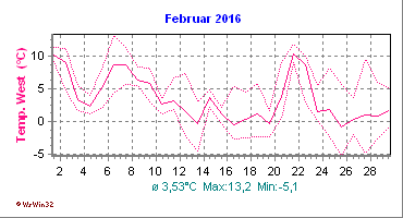Monatsdiagramm Februar 2016 Die Kurven zeigen den Durchschnittswert des jeweiligen Tages an |
