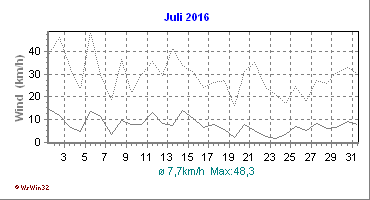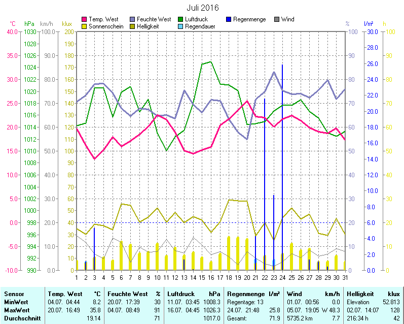 Wetter-Monatsübersicht Juli 2016 | ||||||||||||||||||||||||||||