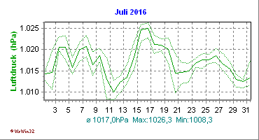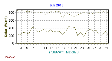 Monatsdiagramm Juli 2016 Die Kurven zeigen den Durchschnittswert des jeweiligen Tages an |