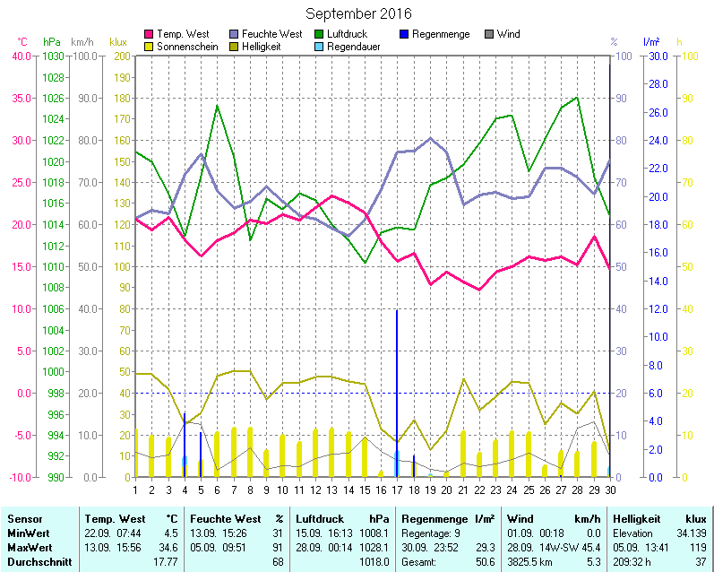 Wetter-Monatsübersicht September 2016 | ||||||||||||||||||||||||||||