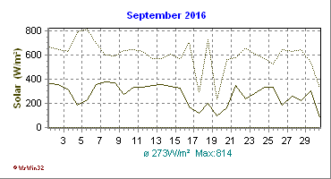 Monatsdiagramm September 2016 Die Kurven zeigen den Durchschnittswert des jeweiligen Tages an |