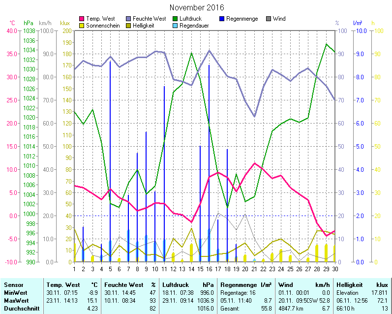 Wetter-Monatsübersicht November 2016 | ||||||||||||||||||||||||||||