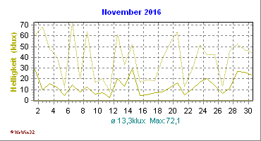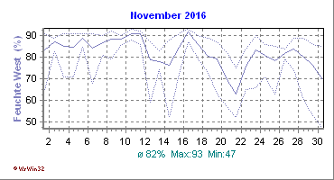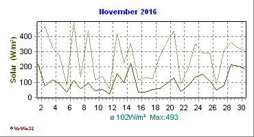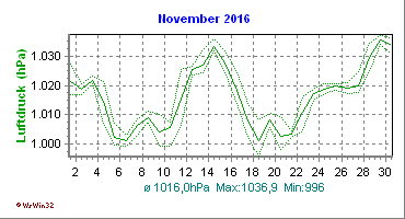 Monatsdiagramm November 2016 Die Kurven zeigen den Durchschnittswert des jeweiligen Tages an |