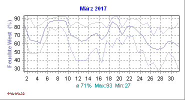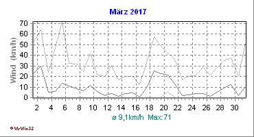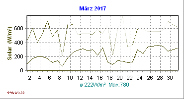 Monatsdiagramm März 2017 Die Kurven zeigen den Durchschnittswert des jeweiligen Tages an |