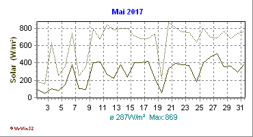 Monatsdiagramm Mai 2017 Die Kurven zeigen den Durchschnittswert des jeweiligen Tages an |