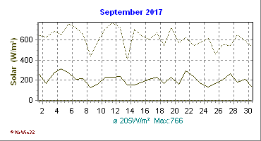 Monatsdiagramm September 2017 Die Kurven zeigen den Durchschnittswert des jeweiligen Tages an |