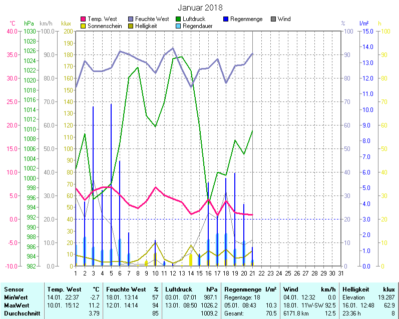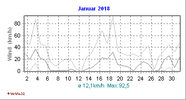 Wetter-Monatsübersicht Januar 2018 | ||||||||||||||||||||||||||||