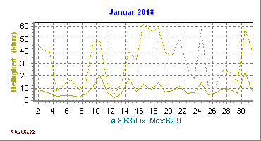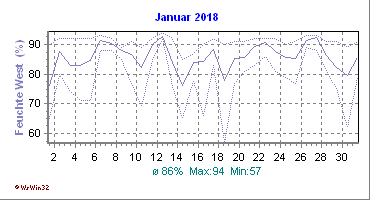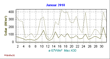 Monatsdiagramm Januar 2018 Die Kurven zeigen den Durchschnittswert des jeweiligen Tages an |