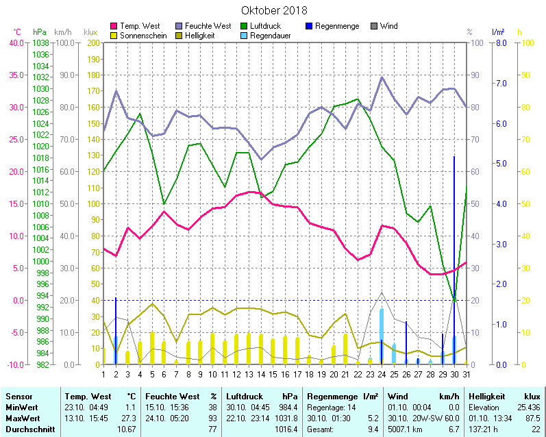 Wetter-Monatsübersicht Oktober 2018 | ||||||||||||||||||||||||||||