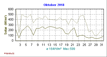 Monatsdiagramm Oktober 2018 Die Kurven zeigen den Durchschnittswert des jeweiligen Tages an |