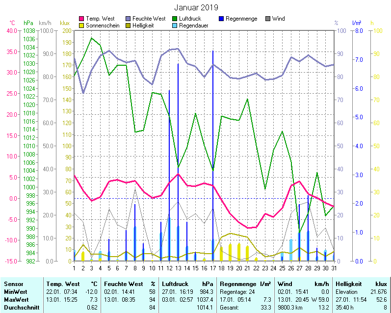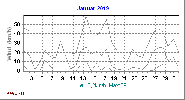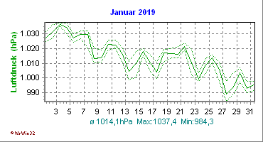 Wetter-Monatsübersicht Januar 2019 | ||||||||||||||||||||||||||||