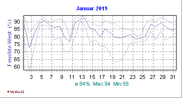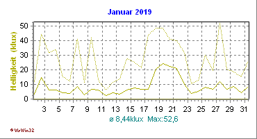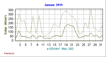 Monatsdiagramm Januar 2019 Die Kurven zeigen den Durchschnittswert des jeweiligen Tages an |