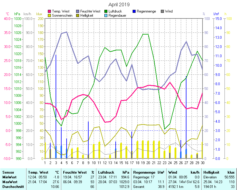 Wetter-Monatsübersicht April 2019 | ||||||||||||||||||||||||||||