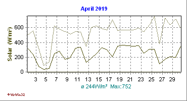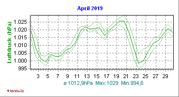 Monatsdiagramm April 2019 Die Kurven zeigen den Durchschnittswert des jeweiligen Tages an |