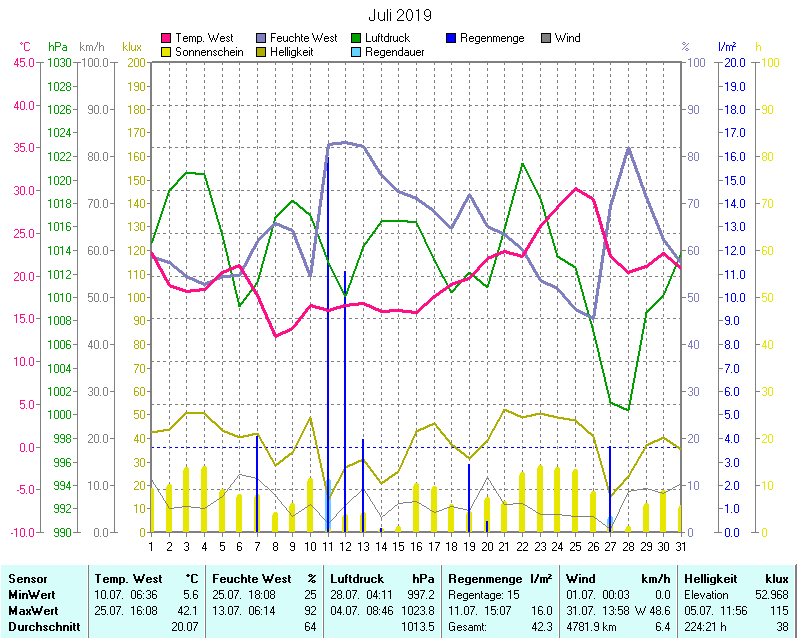 Wetter-Monatsübersicht Juli 2019 | ||||||||||||||||||||||||||||