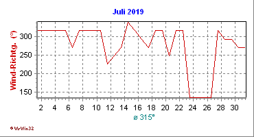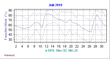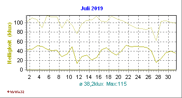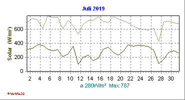 Monatsdiagramm Juli 2019 Die Kurven zeigen den Durchschnittswert des jeweiligen Tages an |
