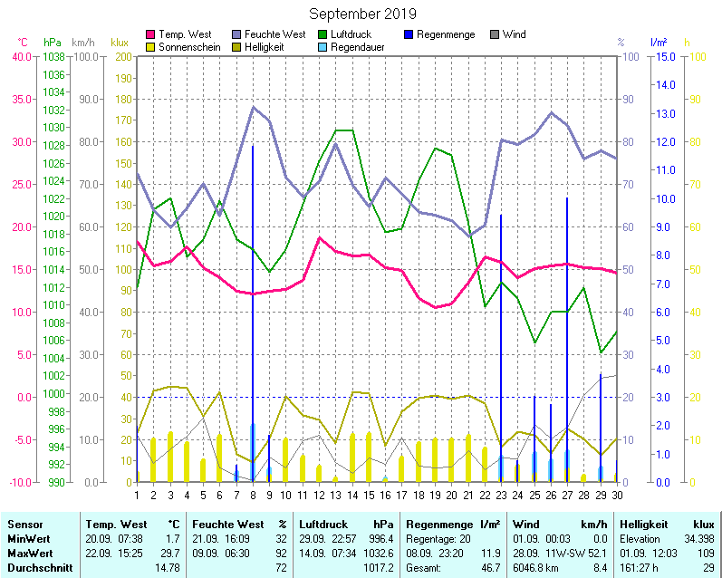 Wetter-Monatsübersicht September 2019 | ||||||||||||||||||||||||||||