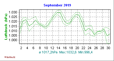 Monatsdiagramm September 2019 Die Kurven zeigen den Durchschnittswert des jeweiligen Tages an |