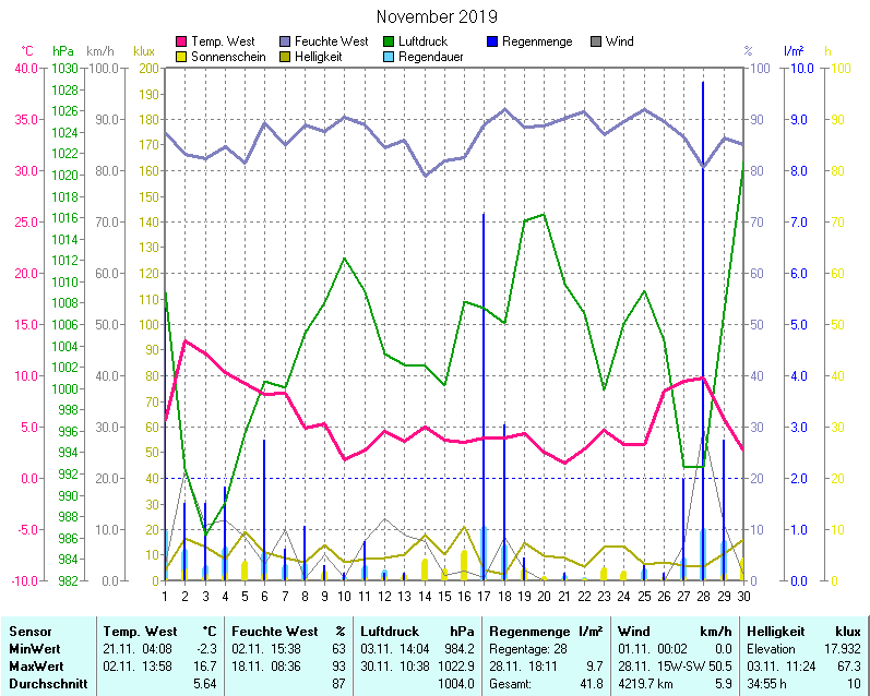 Wetter-Monatsübersicht November 2019 | ||||||||||||||||||||||||||||