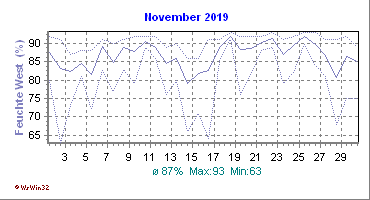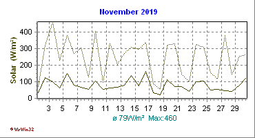 Monatsdiagramm November 2019 Die Kurven zeigen den Durchschnittswert des jeweiligen Tages an |
