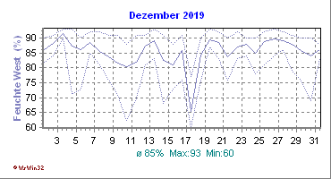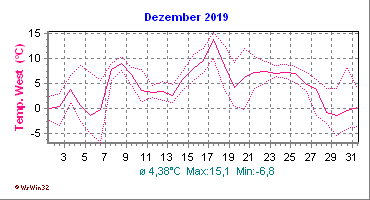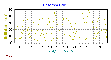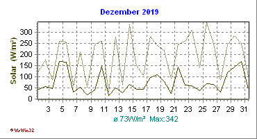 Monatsdiagramm Dezember 2019 Die Kurven zeigen den Durchschnittswert des jeweiligen Tages an |