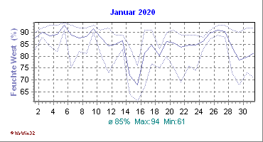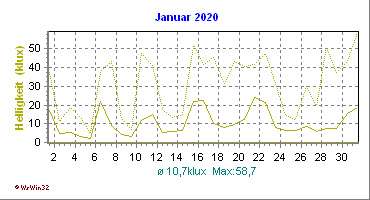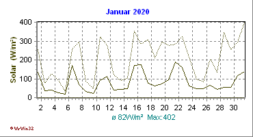 Monatsdiagramm Januar 2020 Die Kurven zeigen den Durchschnittswert des jeweiligen Tages an |
