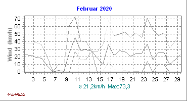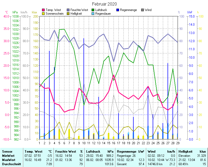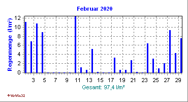 Wetter-Monatsübersicht Februar 2020 | ||||||||||||||||||||||||||||