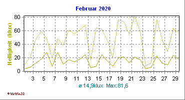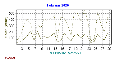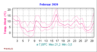 Monatsdiagramm Februar 2020 Die Kurven zeigen den Durchschnittswert des jeweiligen Tages an |