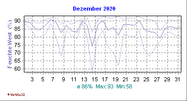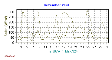 Monatsdiagramm Dezember 2020 Die Kurven zeigen den Durchschnittswert des jeweiligen Tages an |