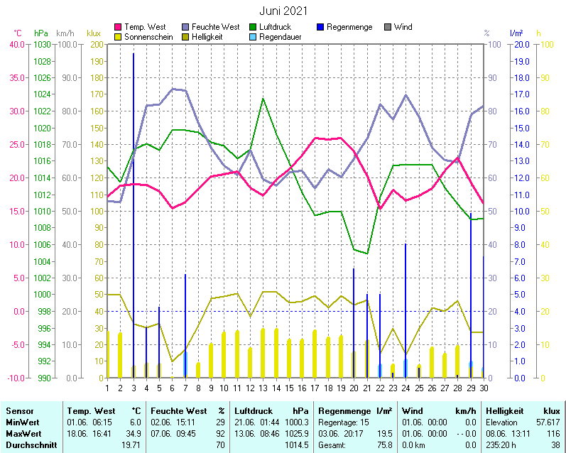 Wetter-Monatsübersicht Juni 2021 | ||||||||||||||||||||||||||||