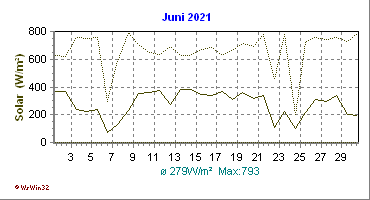 Monatsdiagramm Juni 2021 Die Kurven zeigen den Durchschnittswert des jeweiligen Tages an |
