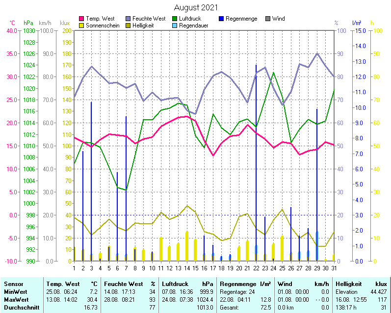 Wetter-Monatsübersicht August 2021 | ||||||||||||||||||||||||||||